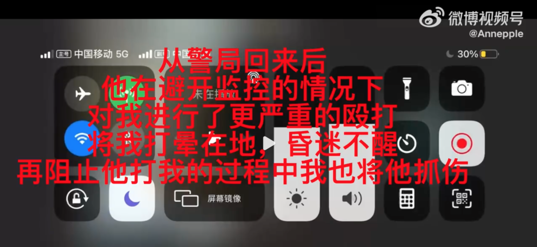 annapple说,每次打人时,他都会把监控掐断。得知妻子录了像,就立马将视频销毁、手机摔碎。