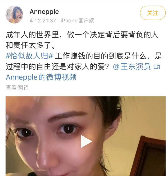annapple再次质问“忙于工作”的丈夫:“工作赚钱的目的到底是什么?是过程中的自由还是对家人的爱?”