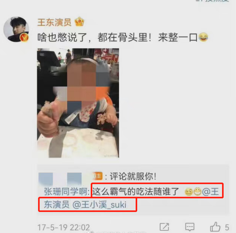在王东晒娃的评论区下,还有人调侃道:“这么霸气的吃法是随了谁了?@王东@王小溪”