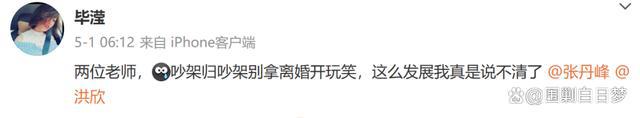 比张丹峰更好笑的,是外界一直认为插足洪欣和张丹峰婚姻的 " 第三者 " 毕滢,这个时候蹦出来打圆场,发微博表示:吵架归吵架别拿离婚开玩笑,这么发展我真是说不清了。