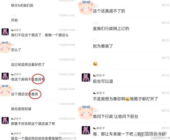 最离谱的是,那次直播的主办方原本为他们订好了星级酒店,可张丹峰那边微信昵称为 " 萌萌 " 的工作人员一再跟主办方讨价还价,要求换酒店,还指定要套房。主办方不接受后,她就私自定了有套房的酒店,并要求主办方报销。