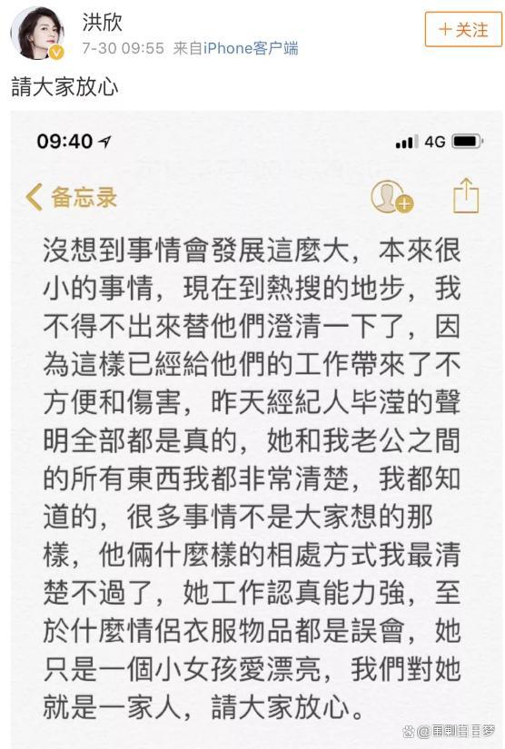 他可以一边谴责网友,说网友无端揣测他们的婚姻状态,一边享受着左手老婆右手经纪人的 " 好处 "。就连回应洪欣的微博,都像是女方在无理取闹,他作为男方无可奈何。