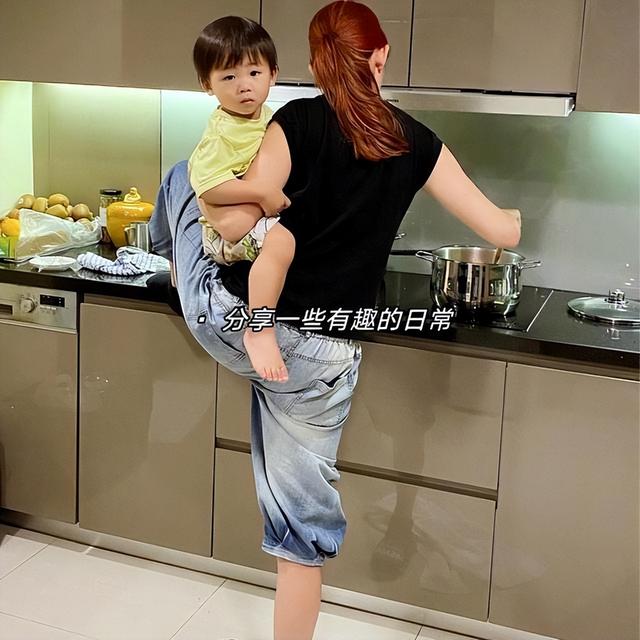 和很多超人妈妈一样,蔡少芬可以一手抱娃,一手做饭。为了不让孩子掉落,一只脚居然都能踩到厨房面板上……