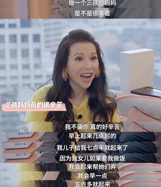 蔡少芬直言:养育三个孩子特别辛苦,而且从大女儿出生之后,几乎没有睡过彻夜觉,更没有睡过懒觉。