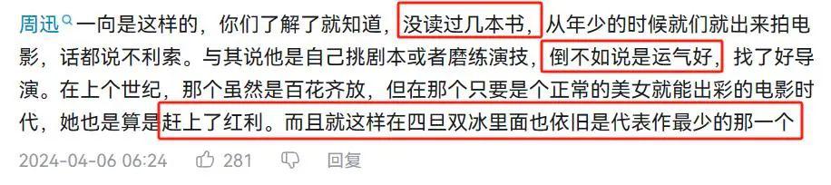 现在连她没什么代表作的话都说出来了,