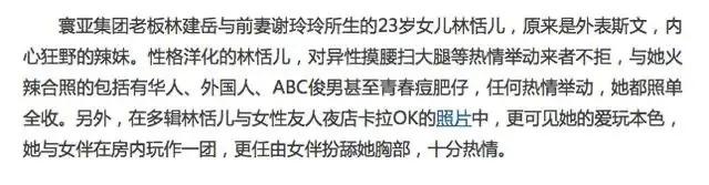 尽管没有照片流出,也并不清楚"剪影门"的真伪,但媒体和大众都把这个形象盖到了林恬儿的头上,认定了她就是"剪影门"的女主之一。