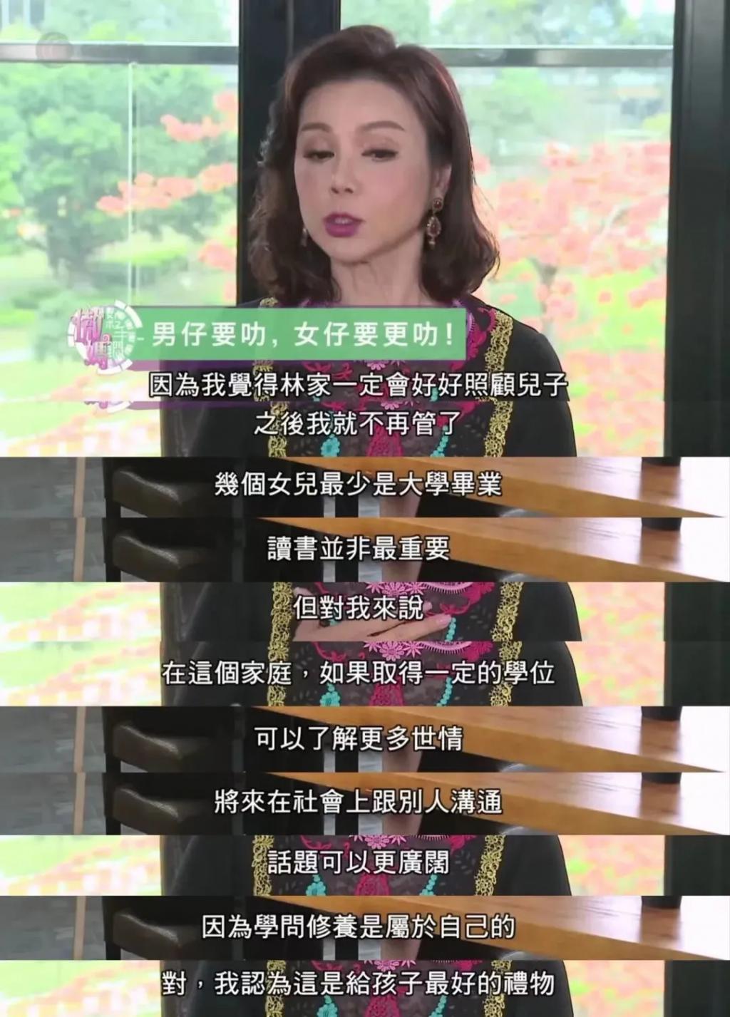 离婚后,谢玲玲获得了五个子女的抚养权,由于林家不论如何都会照顾"儿子",她优先操心女儿的出路,对女儿们的学业认真对待,要求她们最少要拿到大学文凭。