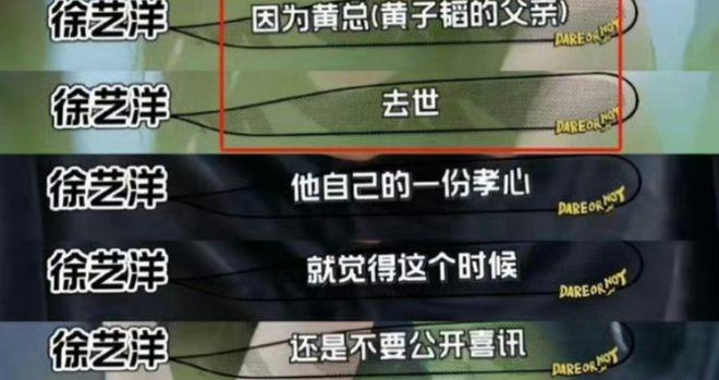 徐艺洋比较接近于黄子韬的工作燃油机。黄不缺钱也不缺名,他要持续工作的话需要精神动力,不然就会直接躺平,毕竟他又没啥艺术追求。