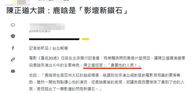 那时业内都在谈 " 鹿晗效应 ",导演陈正道找鹿晗演《重返 20 岁》,就坦言 " 贪图他的人气 "。