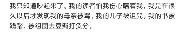 作品连带着家人都经历了一番言语诅咒。