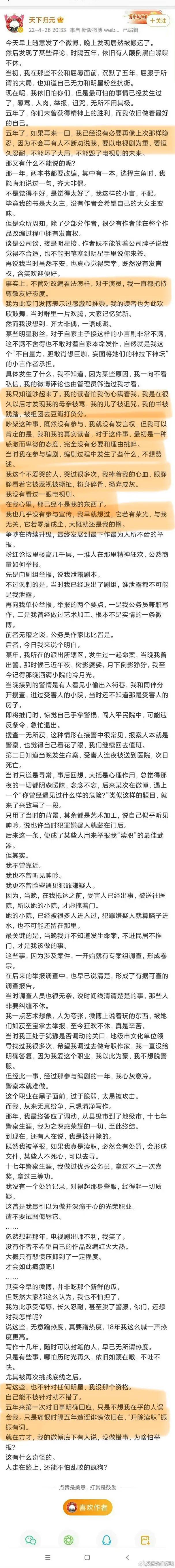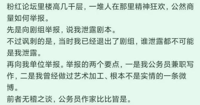 而后作者本人还经历了被举报泄露剧本、公务员兼职写作,