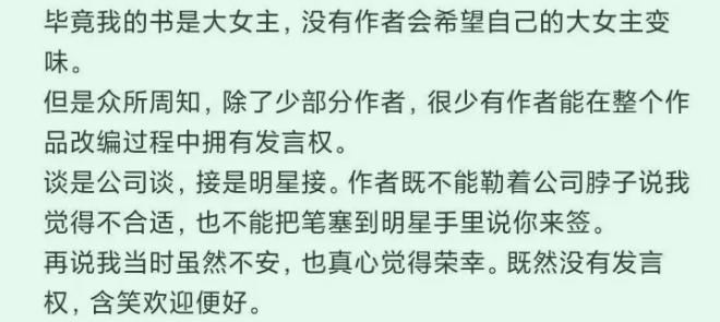 如此改动对于原著作者来说当然是挣扎的,没有作者会希望自己的大女主变味。