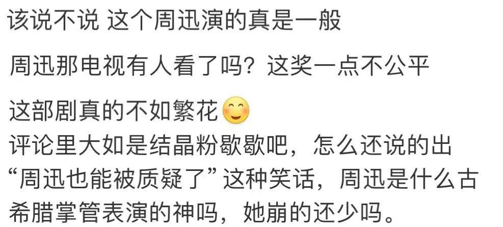 表示周迅被讨伐还有以前的作品和奖项作为支撑,