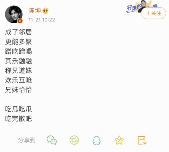 很快,陈坤就以一句 " 大家开心我也开心 " 表态⬇️