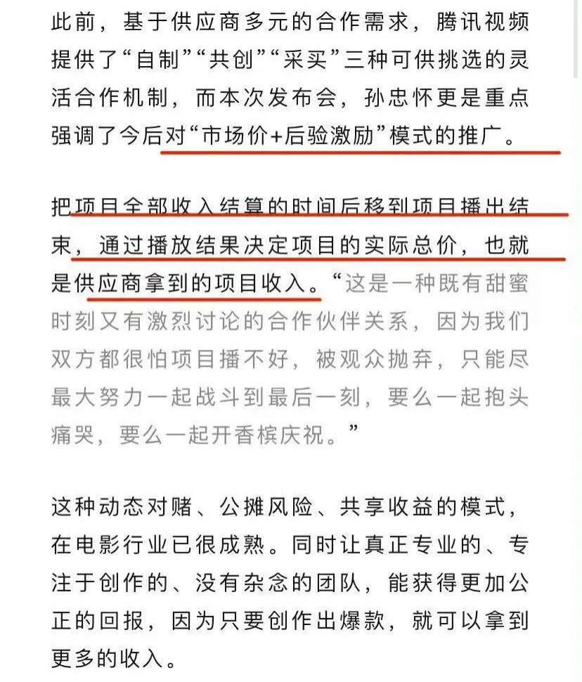腾讯视频开创了 " 市场价 + 后验激励 " 模式的合作机制⬇️