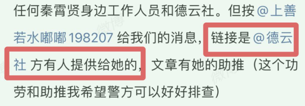 秦霄贤发在微博。