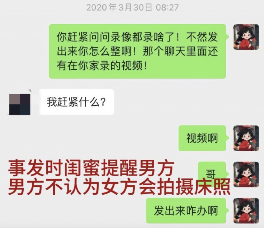 当他得知女方录了像后,承认自己和她上了床。
