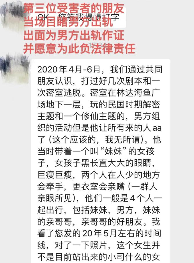 2025 年 4 月到 6 月间,他出轨第三位女生。