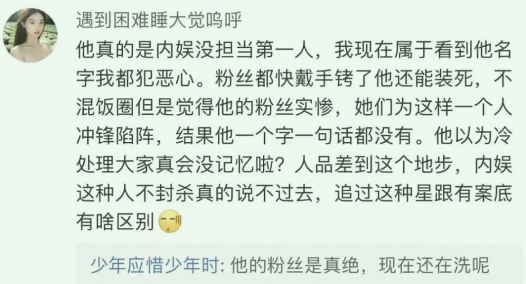 出事之后,一个大粉的话很值得探究。