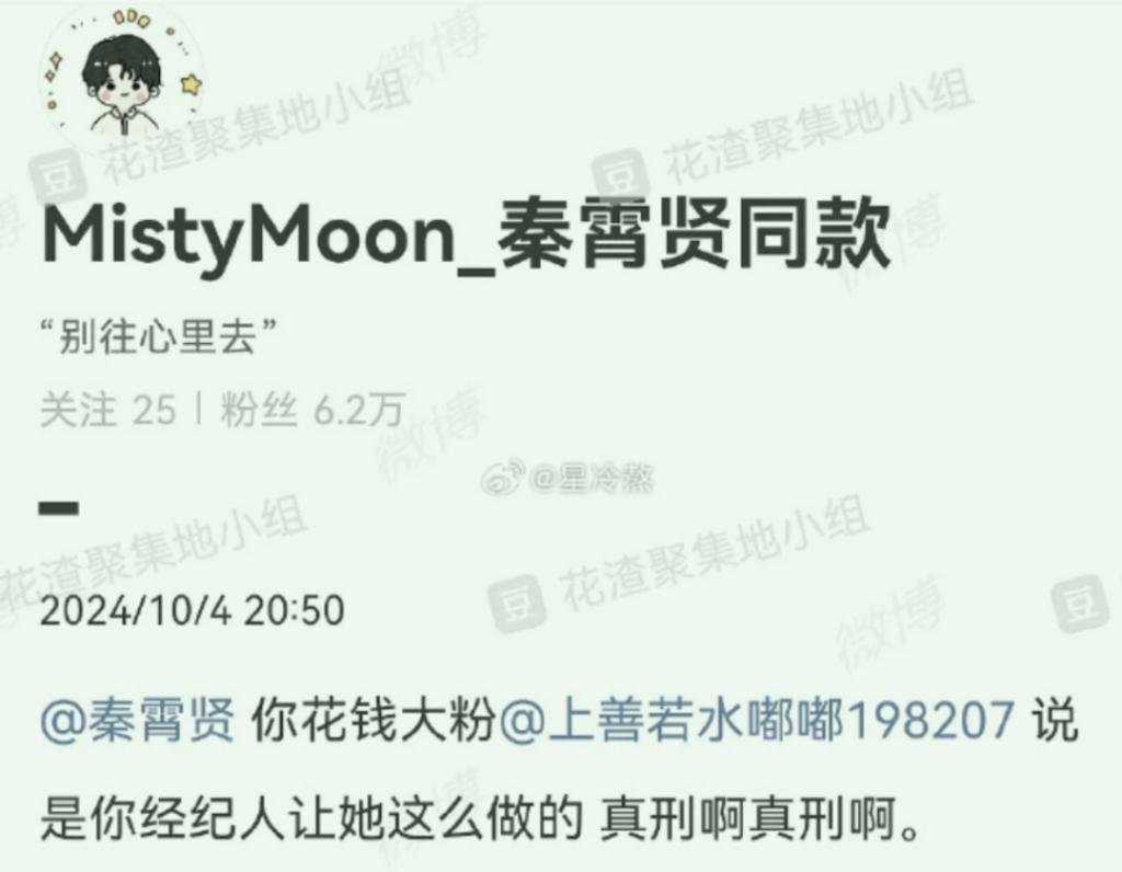 据辛雨锡爆料,2025 年,秦霄贤就开始出轨。
