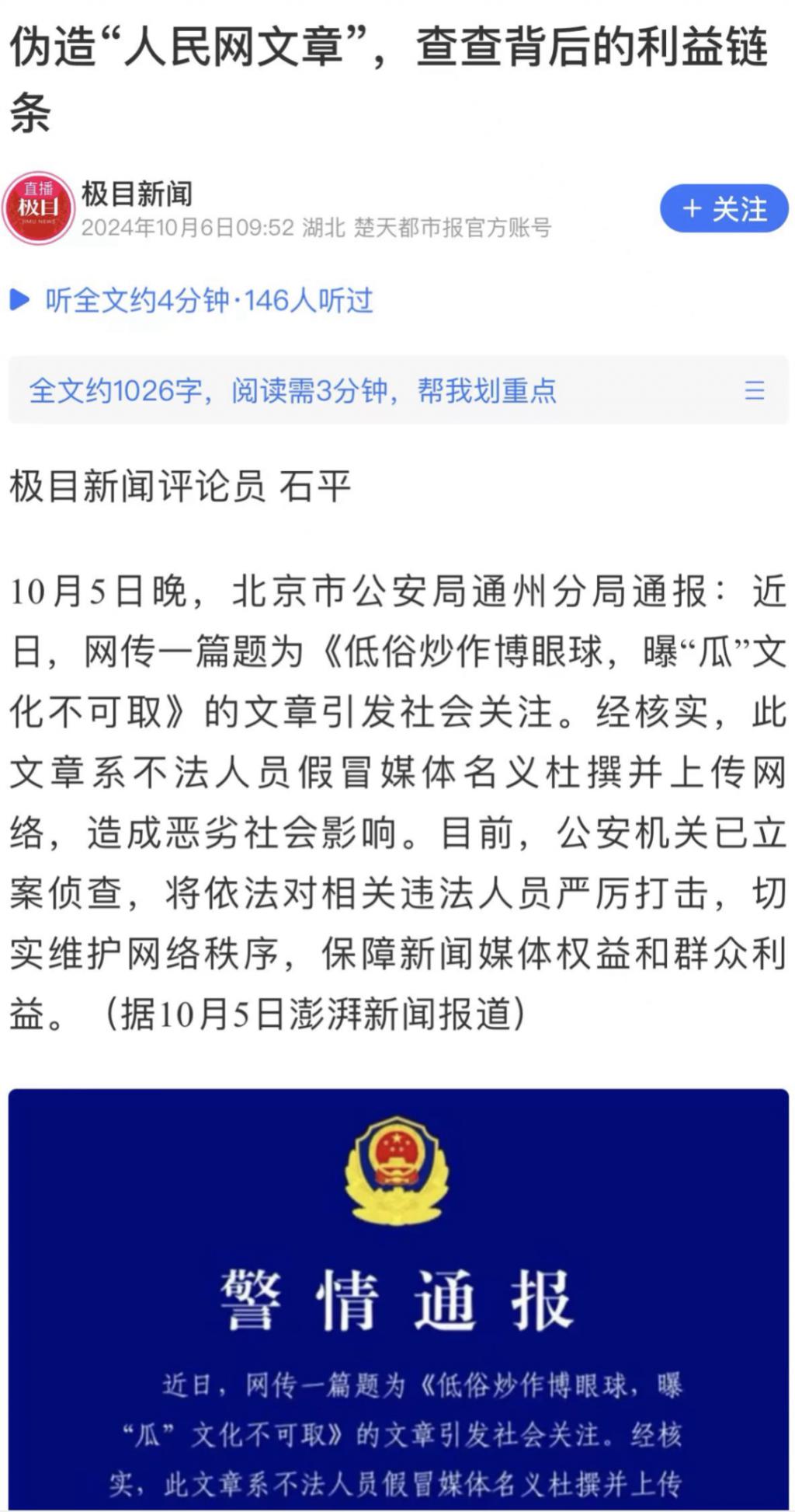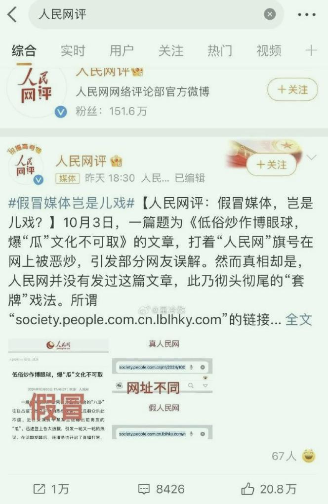 前几天,他们疯狂转发一个链接和截图,称是人民网的相关文章。