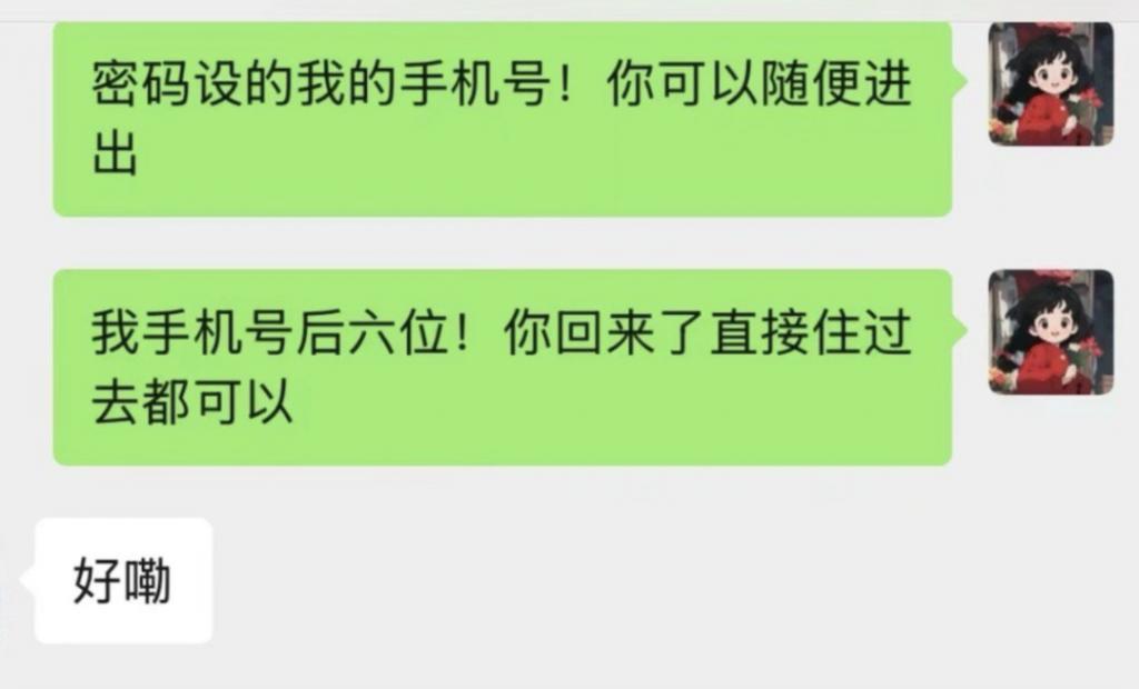 她的家,男方可以随便进,门锁密码都告诉秦。