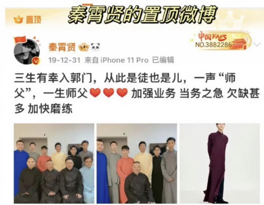 比如秦霄贤的置顶微博。