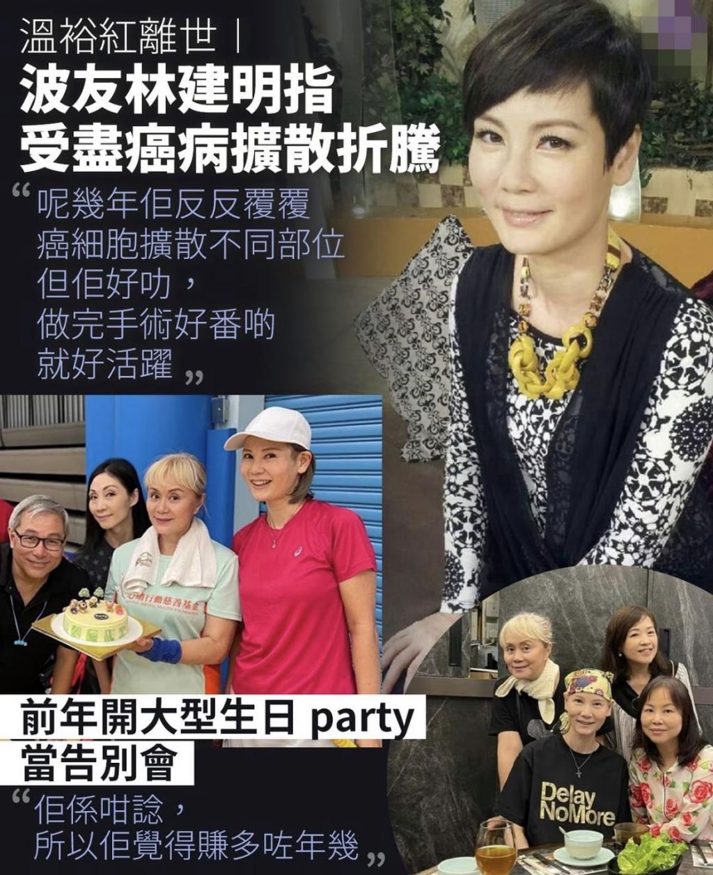 今年初温裕红病情急剧恶化癌细胞扩散到多处,最后严重到痛得无法忍受,最后的一个月,她宣布放弃治疗,等待生命终结。