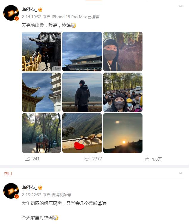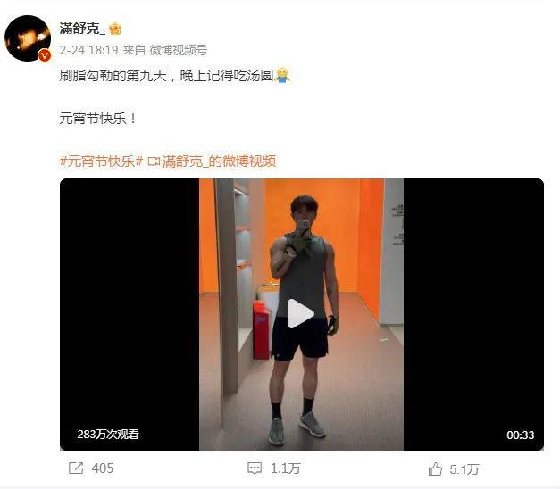 最新的一条微博是在元宵节秀自己的肌肉。