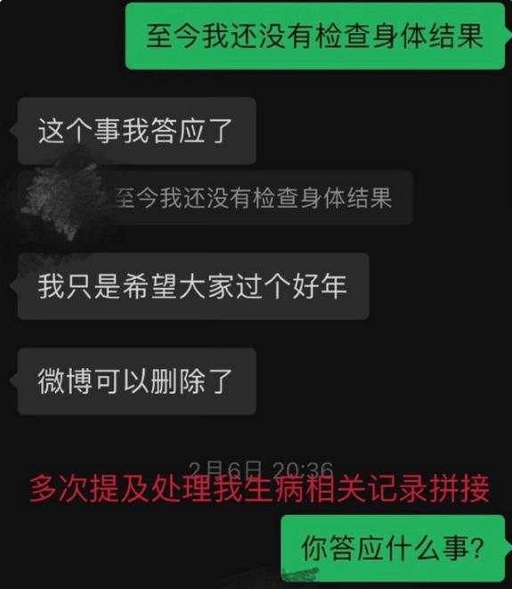 随后,又讲述了满舒克的所作所为,先是表示女生持续高危 HPV 阳性是因为他,随后还表示 " 会负责 "。