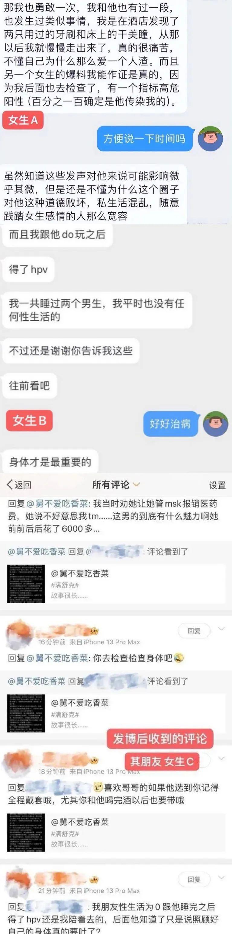 再然后,就是微博发出之后,发现还有其他女孩子也被满舒克传染了 HPV。