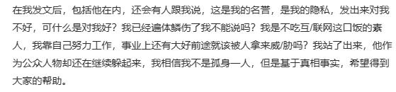 最后一段是不少人(包括满舒克)劝女生不要发这些东西出来,会伤害她的名誉和隐私。