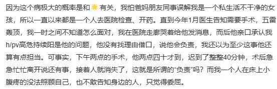 这个瓜开始于 3 月 2 日,有网友在微博上发长文讲述了自己感染高危 HPV 的经历。