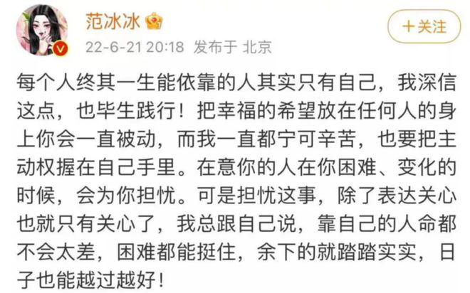就像她自己说的 " 每个人终其一生能依靠的人其实只有自己,我深信这点,也毕生践行!"