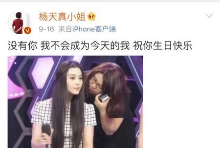 在创立壹心娱乐前,杨天真担任过范冰冰的宣传总监,据说范冰冰蹭红毯回来的各种艳压通稿都是出自她手,而且她还将范冰冰打造成金句女王,一句“我不嫁豪门,我就是豪门”让范冰冰成功从“狐狸精”变身“女强人”。就在范冰冰陷入逃税风波之后的生日那天,杨天真也依然发博祝范冰冰生日快乐。