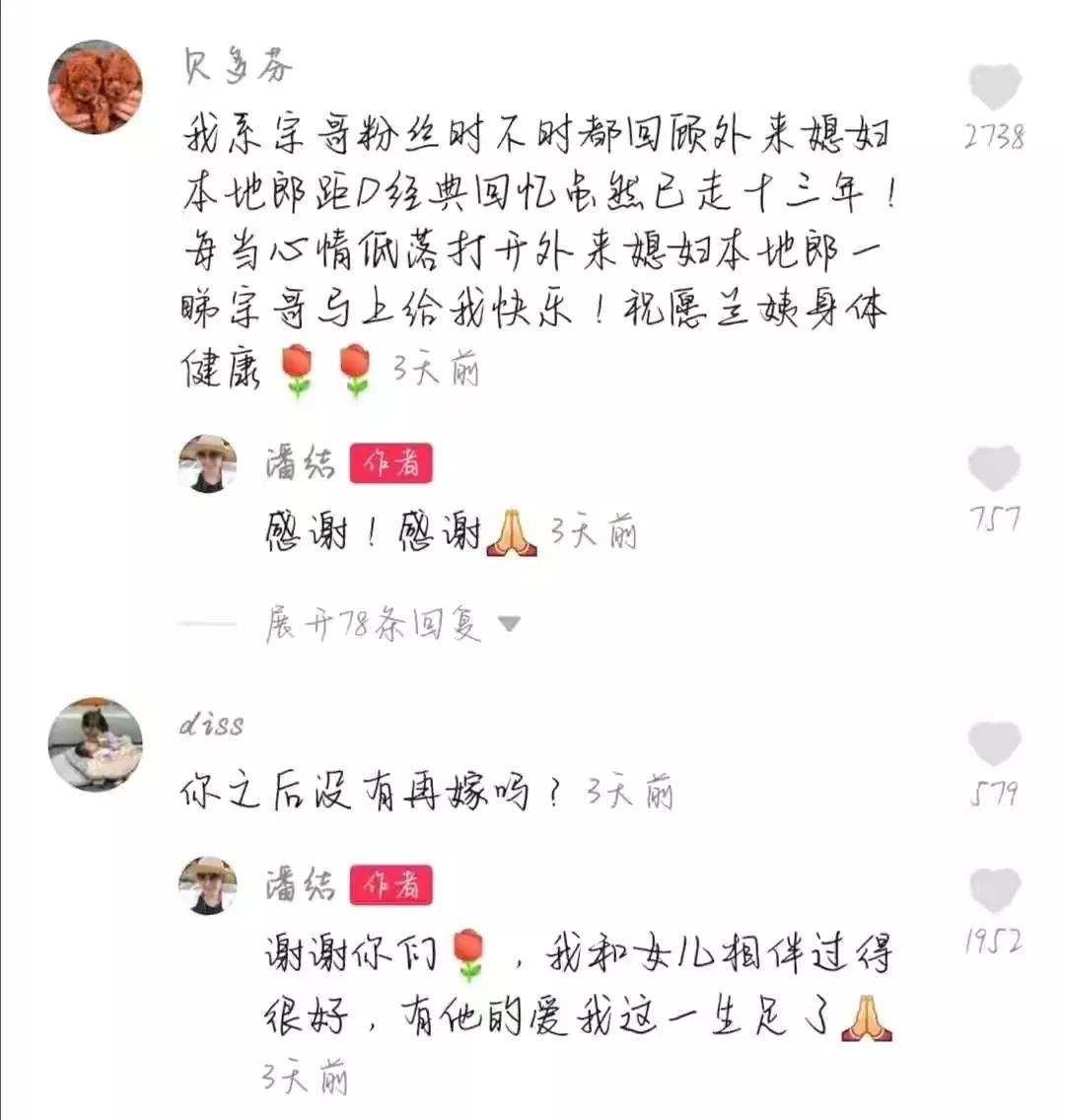 郭昶离去后,有朋友曾经试过介绍事业有成的男人给潘洁,但都被她拒绝了,她不想改嫁,所以一直没有再婚,她对丈夫用情至深,经常在网上发文缅怀爱人!