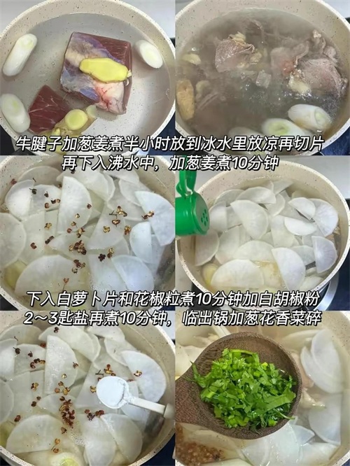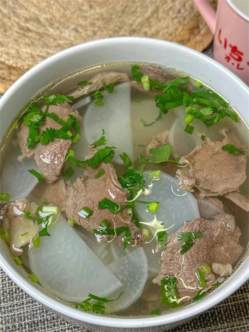加白萝卜片和胡椒白胡椒粉,还有盐煮20分钟,加入香菜。