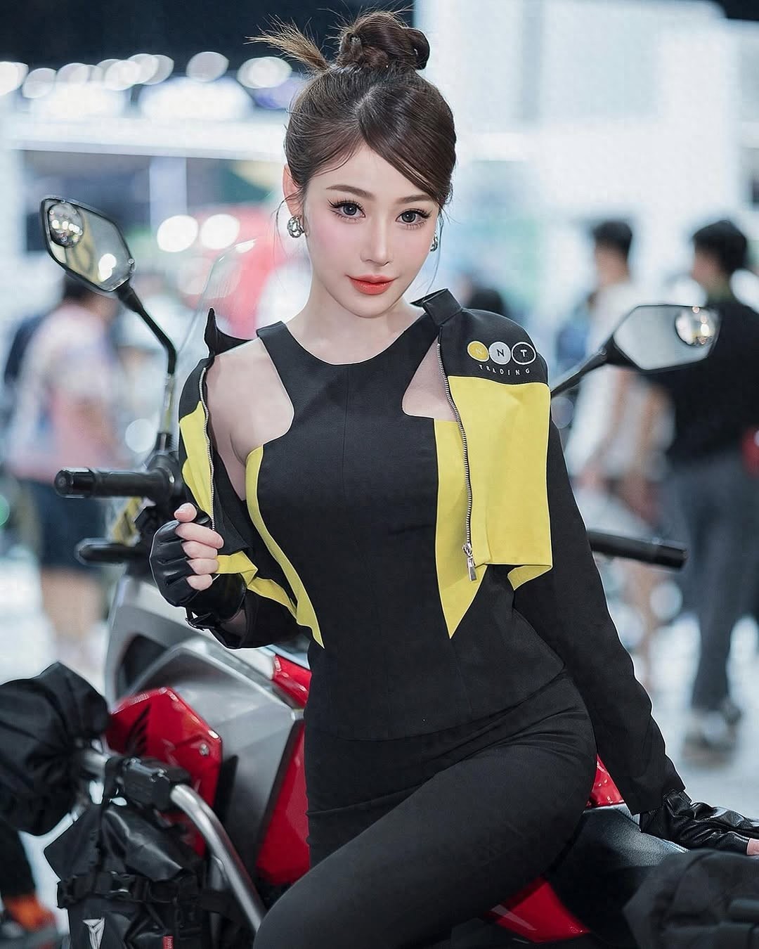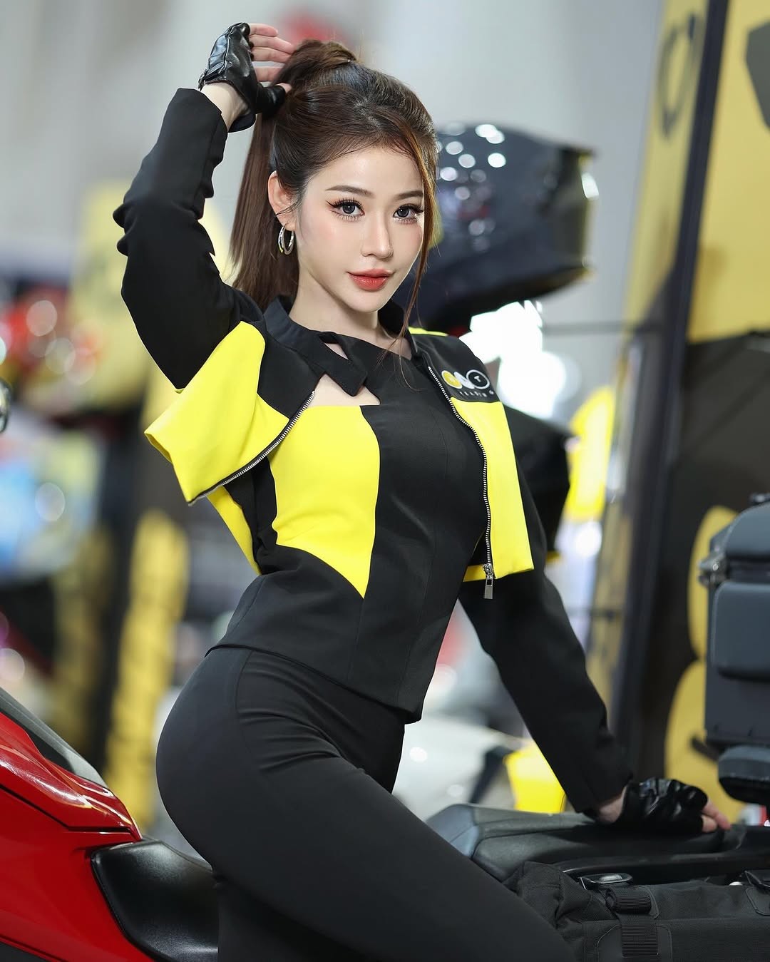 泰国车模正妹!在那熙熙攘攘的车展现场,有一位格外引人注目的美女车模,她以一种独特而令人难以忽视的方式展现了强烈的个性与活力。紧致的黑色与明亮的黄色相互交织,恰到好处地凸显了她纤细的腰部线条;而下身的裙摆或裤脚设计,则随着她的步伐轻盈摆动,将她修长的双腿轮廓展现得淋漓尽致。
