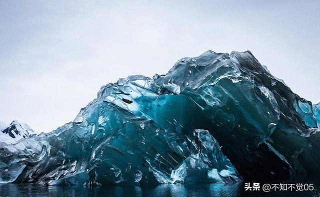 42、第一眼看上去像是某个矿泉水品牌广告的背景图,其实这是漂浮在海面上的一座冰山,由于翻身露出了湛蓝的另一面,恰好被探险者拍下。