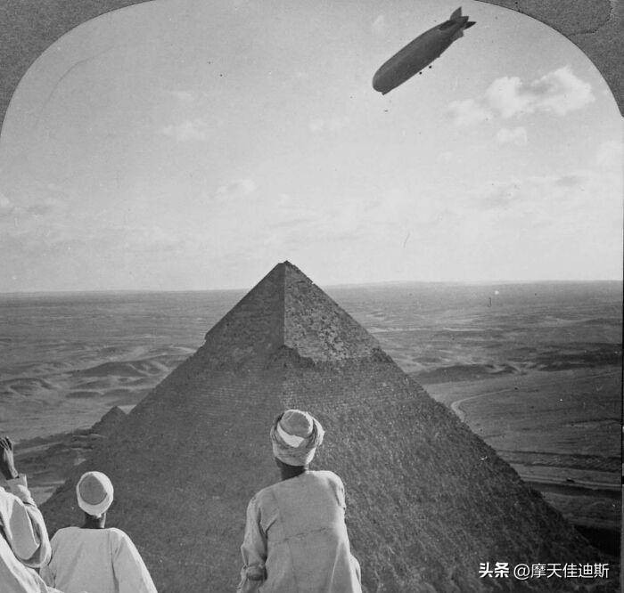 22、这是1931年年时,德国齐柏林伯爵号第一次出现在吉萨金字塔上空,巨大的身型吸引了不少的埃及人围观。