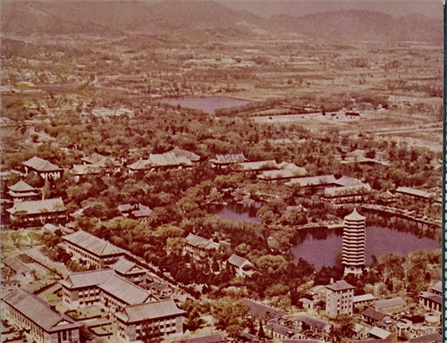 12、燕园鸟瞰图。拍摄于1964。北京大学校园及西北方向的景色~~已经消失的东北义园(东北军墓地)和扇子湖。