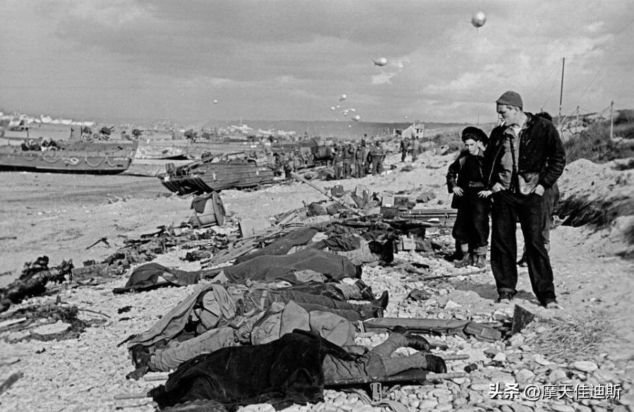37、1944年,诺曼底登陆战结束后,牺牲的美军士兵们,遗体都被整整齐齐地摆放在了岸边。站在一旁的是一群法国的渔民。看着遍地的遗体,其中还有不少年轻人,他们愣在了原地沉思,久久没能回过神来。亲眼见过战争的残酷后,他们才发现战争离他们并不远。