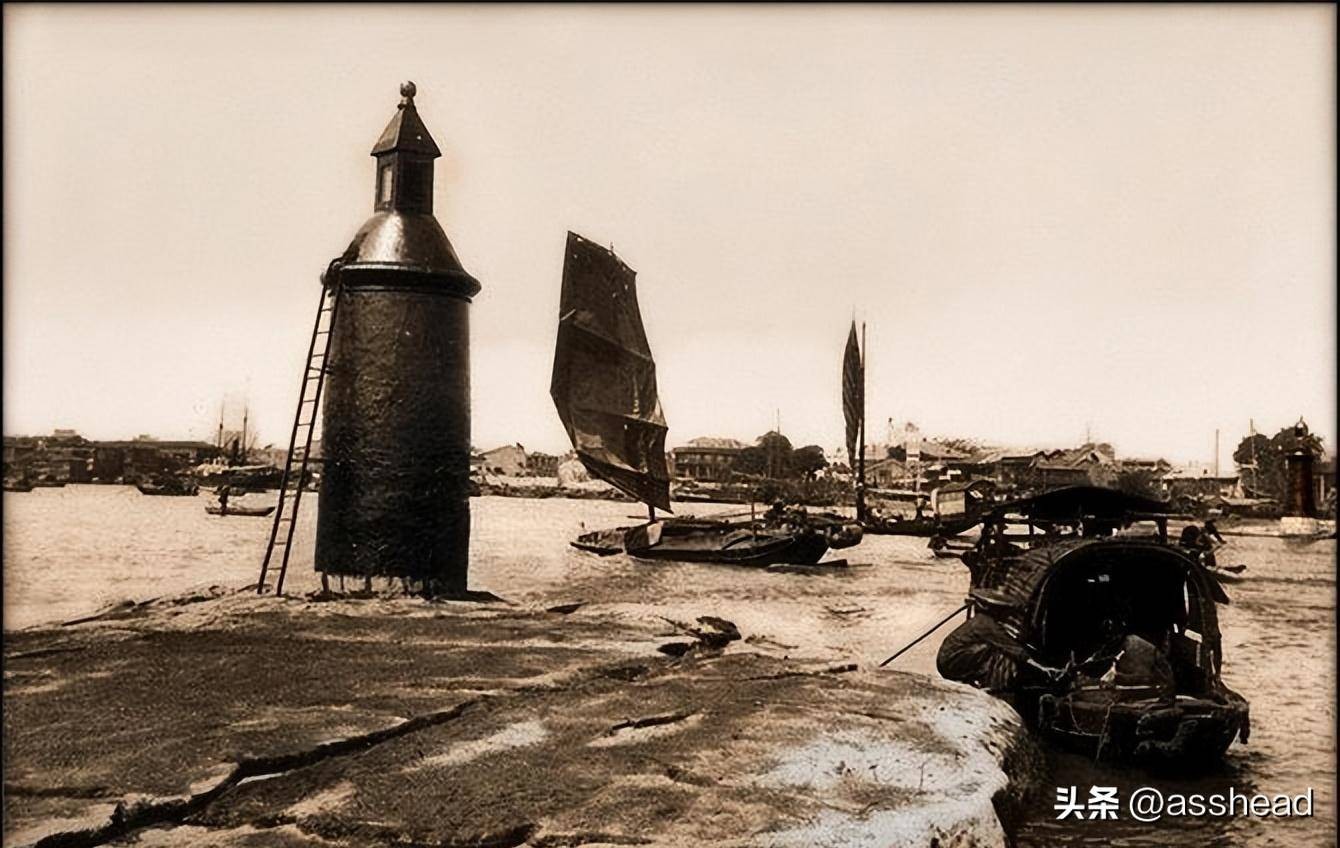 20、1891年,广州珠江边的一个灯塔。河里还有不少帆船。