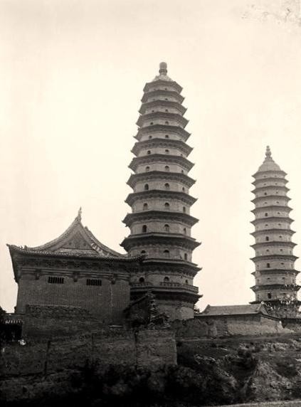 30、河南洛阳奎星楼。左图拍摄于1907年。右图好像是喜仁龙的拍摄。拍摄时间比左图要晚十几年~~结果阁顶就秃了。在网络上没搜到现在的奎星阁照片。还在吗?
