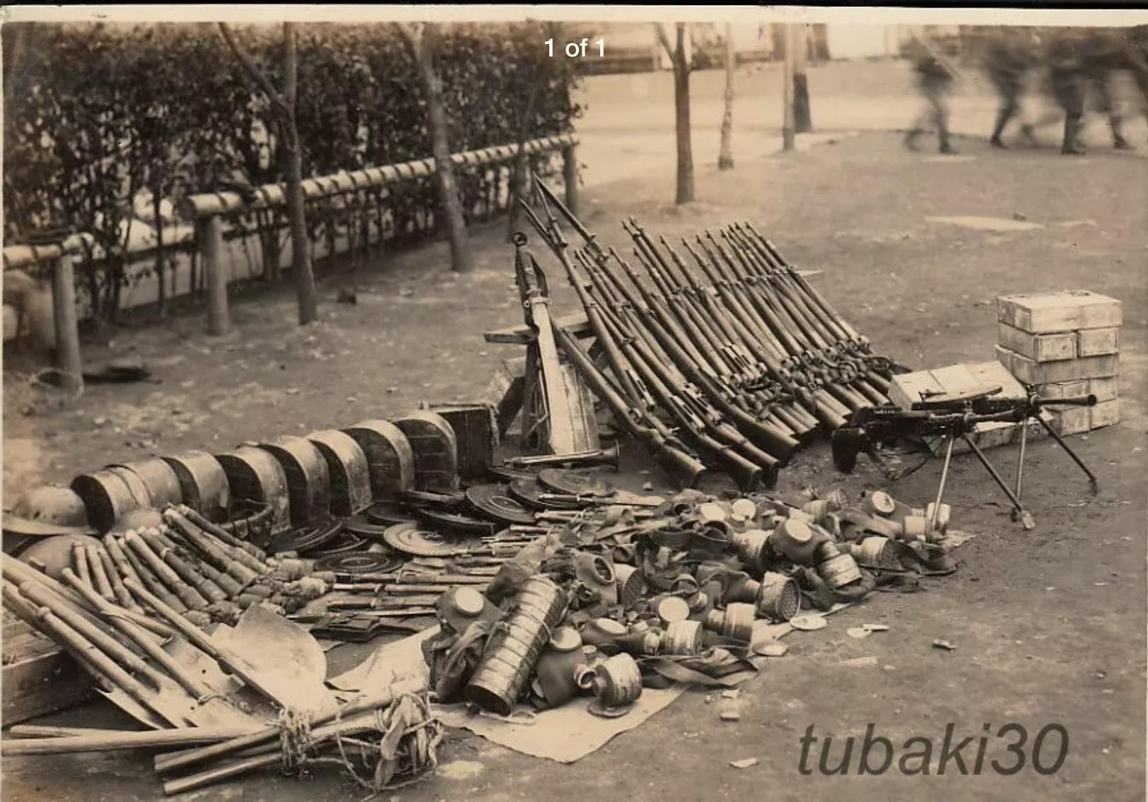 06、1937~~1945,中日战争期间,侵华日军展示缴获的国军武器装备。具体时间地点不详。