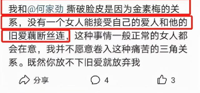 可有人还是不肯罢休,在社交平台上直接艾特何家劲,直言自己是何家劲的女朋友,还说自己与何家劲分手与金高素梅有很大的关系,不过没有实质的证据,一切或许都是有人想要炒作。