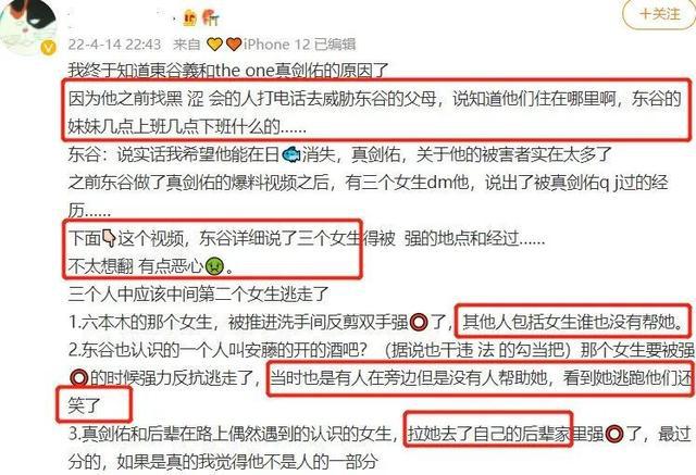 之后 3 个多月,东谷义和竟然没有食言,陆续放出了不少大瓜——交往未成年、强迫后辈、婚内出轨、涉 H 涉 D 偷税漏税,被爆料明星有的广告被撤了,有的默默注销了社交账号,有的直接跑路离开日本去了美国,以至于网友都开始担心东谷的个人安全。