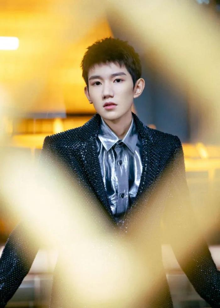西装上的精细珍珠与细腻刺绣华丽铺陈,将雕塑感与流线型自然结合,衬托少年挺拔的身形。简约利落又不失时尚元素,是贵气与清爽结合在一起的矜贵少年王源。