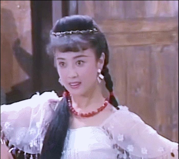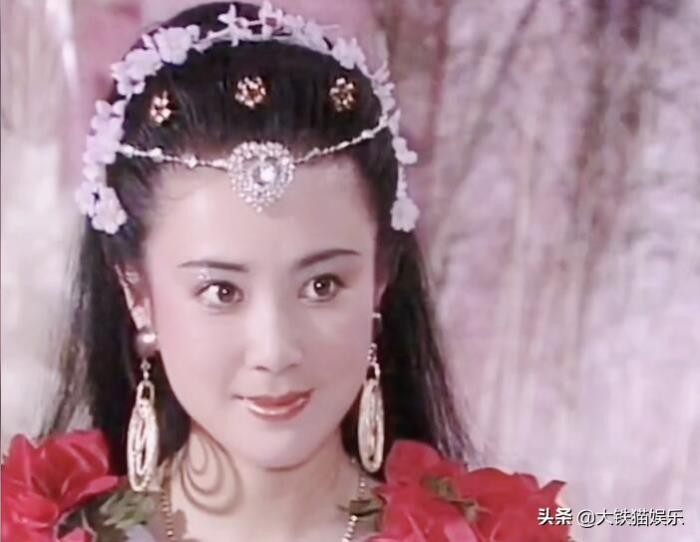 那个年代物质还很匮乏,服化道肉眼可见的廉价,头上挂着各种塑料头饰,服装看起来没有什么质感,眼妆厚重颜色还挺奇怪,但傅艺伟硬是凭借一己之力让这个角色鲜活立体了起来。