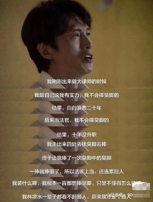 这样一个骨子里骄傲的精英,既瞧不上林凉水这样的 " 三流律师 ",也不屑与权贵同流合污。他是人格保持得最完整的那一个,在铁一般的事实面前,他不可能违背良心为了胜诉而钉死一个无辜的受害者。